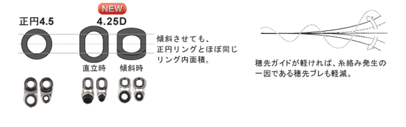실엉킴 경감을 위해서는, 링은 가능한 한 앞쪽으로 기움 시키는 편이 좋다.그러나 기울일 정도로 실대로에 대한 내경은 좁아지고 저항은 늘어나, 실대로는 악화…우키 멈춤 사용이 전제…세사화라고 해도 주류는 나일론사…시에 5~6호등이라고 하는 태사 사용도 시야로…부상한 것은 「타원 링」안입니다.