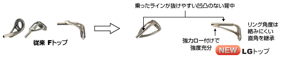 장대의 첨단인 톱 가이드로 일어나는 실엉킴은, 가이드 자체에의 관련에 가세해 장대 끝에 감아 붙는 케이스도 있습니다.이 관련되어에 대응하려면 , 링면을 기울였을 뿐의 설계에서는 대응하지 못하고, 경사 브릿지가 필요합니다.신톱 가이드 개발의 요점은, 이 경사 브릿지의 취급이었습니다.